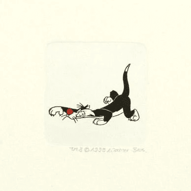 Warner Bros. Limited Edition Etching with Hand Tinted Coloring on Paper: "Sylvester the Cat"