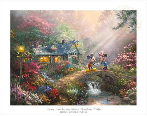 Thomas Kinkade Signed and Numbered Limited Edition Giclee Print on Paper:"Sweetheart Bridge - Mickey and Minnie"