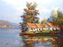 Alex Perez Hand Signed and Numbered Limited Edition Acrylic on Canvas: " Three Houses Lake "