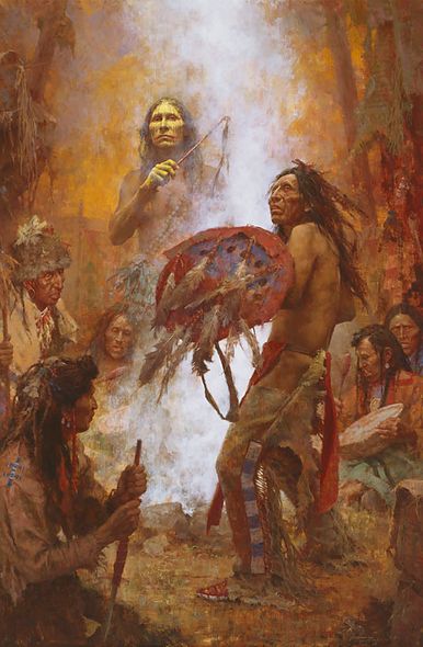Howard Terpning Artist Signed Limited Edition Canvas Giclee:"Transferring the Medicine Shield"