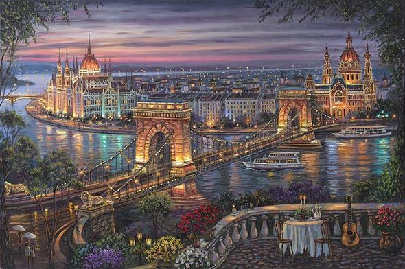 From Robert: Budapest, Hungary’s capital, is one of the most distinguished and picturesque locations in the world. In this portrayal, I envision a romantic candlelit balcony overlooking the Danube River below, twinkling from the moonlight above. A 19th century chain bridge, which looks to be radiating pure gold in the cascading evening light, expands from one side of the river, to the other. Further in the distance, you can marvel at the 13th century gothic majesty of the Palace of Castle Hill. I can almost make out the sounds of exuberant revelry which must have been maintained constantly from there in that time. Whether it be from a balcony towering above the city, or on an enchanting boat cruise winding through the river; you will certainly enjoy all the breathtaking views that Budapest has to offer.
