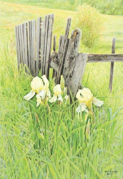 About the Art: It's fun to speculate about how long ago these iris were planted, and by whom. The property is the Hooks Ranch near Buckhorn, Wyoming, a homestead painted by Jon three times before. With each visit to this property, Jon finds more treasures to inspire his brush, including this pioneer garden planted with hope and tenderness many years ago. Untended, but not unloved, the flowers keep their vigil faithfully every spring.