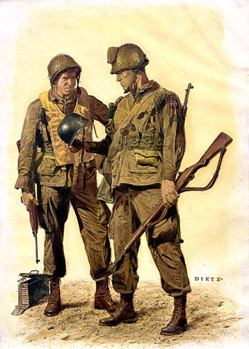 About the Art: A historical painting stands or falls on how well it depicts the story it is attempting to illustrate, and how convincingly it combines the people, their actions, costumes, surroundings and atmosphere in an appropriate composition. A good historical painting uses all of these elements to tell the major story and perhaps a second subtext. Both are driven by how interesting the situation is that the artist is attempting to render. How the viewer reacts to a great painting transcends its immediate story and strikes a deeper chord, one that hopefully evolves and changes as the viewer contemplates the art over time. It is this last and most worthy goal that artists like James Dietz aspire to. In his portrait of events in the 20th and 21st Centuries, he labors to achieve that rare combination of historical fact and the romance, adventure and color of fiction. Born in San Francisco, Jim graduated from Art Center College of Design in 1969. He had a successful illustration career in Los Angeles and New York, with a steady flow of work ranging from automobile ads, movie posters, and romantic and historical/action book covers. By 1978, Jim and his wife had moved to Seattle, where Jim's work gradually shifted away from commercial illustration to primarily historical aviation, automotive and military art. Today his work is internationally known and collected, and his style, with its emphasis on depth of story, is recognized by collectors of historical art. His list of clients includes Boeing, Bell Helicopter, Federal Express, Allison, Cessna, Flying Tigers, the Indianapolis 500, BMW, US Air Force Documentary Art Program, Wingnut Studios, Meadowbrook and Pebble Beach Concours d'Elegance, the National Guard and many U.S. Army organizations and associations to include: the 82nd Airborne Division, the 101st Airborne Division, U.S. Army Rangers, Special Forces, 1st Division, 2nd Division 3rd Division, 4th Division, 1st Cavalry Division, 11th Armored Cavalry Regiment, 173rd Airborne Regiment, the Command General Staff College, and the United States Army War College. Jim and his wife, Patti, live in Seattle with their dog, Sarah, who shares the distinction with previous Dietz pets, of being a regular in Jim's paintings. Their son, Ian, is currently an officer serving in the U.S. Army. Jim works in a warm, pleasantly cluttered studio that resembles a WWI aviation bar, surrounded by uniforms, props and models that have made their way into paintings over the years.