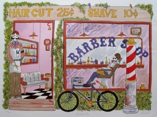 Tom Wood Hand Signed Limited Edition Lithograph:"Barber Shop" | Out Of Stock
