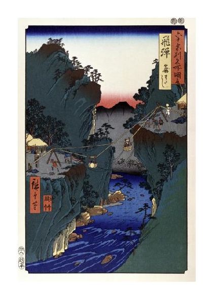 Hiroshige Fine Art Open Edition Giclée:"Hida Province (Kago Watashi) Basket Ferry"