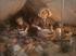 About the Art: Artist Morgan Weistling's penchant for extensive historical research is the collector's windfall and The Campers provides a fascinating glimpse into how this modern master comes upon inspiration. "Often when I am researching for a big painting I find other ideas emerge," says Weistling. "While working on my painting Oregon Trail Family, 1848, I was inspired to paint this other idea focusing on the simple tents the frontier settlers often used. Set in the late 1800s , these two little pioneers have made themselves at home in their temporary shelter. As the sun is setting and it gets darker, the candle is lit and the beans are served. Cherished items brought on the adventure lay strewn on the quilt with the carefree abandon of childhood."