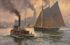 "Sail and Steam on The East River" captures the dynamic contrast of traditional sailing vessels and early steam-powered boats navigating one of New York City's busiest waterways. Don Demers' meticulous attention to light and atmosphere brings this historical maritime scene vividly to life.