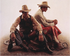 About the Art:These two brothers, Mark and Dave, were both from a small town in New Mexico. The previous summer they had worked in a Wild West show in upper New York State. Dave, the older of the two, dressed more like an old style sheriff while Mark wore contemporary western rodeo clothes. They were very handsome young men. They held part time jobs during the day to help pay their entry fees at night rodeos. This is an attempt to capture the mood of two young boys, far away from home, feeling the insecurity of their situation and apprehensively awaiting their next ride. - James Bama