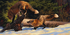 Print Description:A male red fox courts a female is this beautifully rendered and colored image from Greg Beecham. He observed these foxes in the wild and was then able to capture both the kinetic energy of the animals' movements and the way golden sunlight reflects off of snow, fur and pine boughs. Greg is a master of painting wildlife in motion — this is the reason why he was featured in an article in "Wildlife Art" and his "Bustin' Through" made the cover of "US Art."