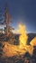 About the Art: The season is late summer and all the snow has melted from the mountains. So the campfire was not built to create warmth but for the sheer enjoyment of seeing its simple beauty. The fire is blazing and very hot. The viewer is close to it for an immediate experience right in front of you. It's a campfire during sunset in the mountains. The setting is not any one place but a combination of landscape elements from Yosemite.