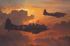 About the Art: It's June 4, 1942. Two U.S. Navy SBD dive-bombers - "Dauntlesses" from the carrier Yorktown - climb into the pacific sunrise and head toward the island of Midway, now threatened by Japan. Since the attack on Pearl Harbor, six months have passed in dark clouds of defeat. Japanese forces control the Pacific, their rising sun ignites the Orient. But today the tide will turn. The Dauntlesses will howl out of the dawn to smash a huge Japanese armada. This battle of Midway was history's second naval encounter fought entirely by aircraft. (The first was Coral Sea.) American losses were heavy: 132 planes down, and one carrier sunk - the Yorktown. But the SBDs sank four enemy carriers, and with them, 275 planes. Thanks to Dauntless planes and dauntless men, the darkness of defeat gave way to a dawning of hope for final victory.