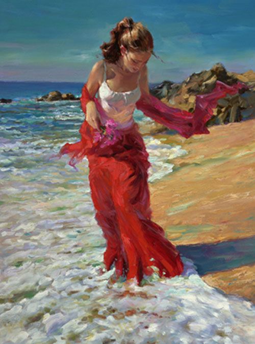 About the Artist: Born in Chabarovsk, Russia, Vladimir began painting at theage of three and his talent would be noted repeatedly throughout his adolescence. After having attended the art school, Krivoj Rog and having served in the army, Vladimir was admitted to the Lvov Polygraphic Institute in the former Soviet Union. Beginning in 1984 Vladimir began participating in, and winning, International Competitions for poster art. Vladimir moved to Moscow in 1988 and before long, Vladimirscareer in commercial art was in full swing. Notable Russian publishing houses sought his talents to design posters and CD and cassette covers for musical groups. While working with the publishing houses he continued to work on his paintings and participate in exhibitions. In 1990 Vladimir began traveling to Europe where he earnedmoney by painting portraits on the streets of Barcelona,Berlin, Vienna and other European cities. It is with this experience he further honed his skills in depicting the human form. Over the past fourteen years, his art has evolved into the striking figurative work he creates today.Vladimirs vibrant color palette and bold strokes coalesceto create evocative images that possess a timeless sensibility.
