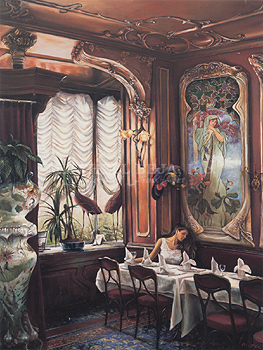 Razumovskaya's style is colourful, blending the colour to create the illusion of flowing streams and forms, creating magical almost fairytale portraits of people and places. Her style creates a powerful sense of movement and life and captivates the viewer in what feels like a moving image in a painting, blurred and distorted images line the background, causing a further sense of mysticism and suspense.