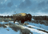 His paintings are rich in detail and muted in tone, true to the remote landscapes he chooses to illustrate. The Indian encampments, wildlife and hunting subjects portrayed against these magnificent areas are rendered in such a way as to give the viewer a sense of gazing on the past.