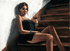 Fabian Perez Handsigned and Numbered Limited Edition Embellished Giclee on Canvas: "Girl With Red at the Stairs"