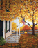 About the Art: Old glory proudly graces the center of this nostalgic setting of a country home in autumn. A broom metaphorically implies work to be done while a sturdy oak lends permanence and protection. A distant stand of trees is a mere peek at the beauty of the American countryside. One is secure within the fieldstone walls while free to roam through a gateless passage. Replete with golden and rust hues, this classic landscape provides a sense of peace, patriotism, and home.