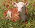 About the Art: Texas artist Bruce Greene paints and sculpts in a studio surrounded by cattle so he is quite attuned with the little calves in spring. Texas springs are beautiful with bountiful wildflowers everywhere you look. This little calf has settled into sweet smelling grasses which are dotted with hundreds of flowers known as Indian Paintbrush.. He has the perfect life Under the Indian Blanket.