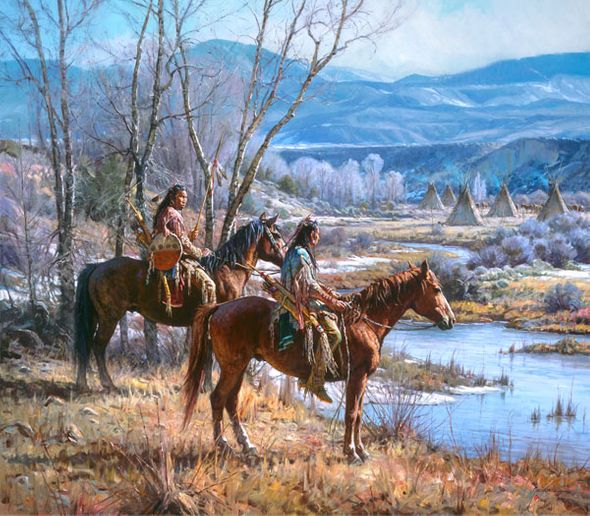Martin Grelle Artist Hand Signed and Numbered Open and Limited Edition Canvas Giclee:"Apsaalooke Sentinels"