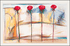 In her quest to perpetuate beauty through art form, Gogli is multi-faceted in that she paints in a realistic style as in her still life originals; and also in an abstract style that features her flowers that have a super-realistic quality; as well as in an abstract style that borders on Cubism where the viewer makes their own interpretation. Additionally, her abstract floral imagery depicting three or four red roses or red daisy-like blooms with long, long stems are available as hand-colored etchings. In further discussing the styles of this most versatile artist, the notion of exaggerated or "super" realism comes to mind in that her floral abstract paintings are meticulously detailed in such a way as to create the illusion of textures, surfaces and shadows that appear clearer and more distinct than the viewer might expect.