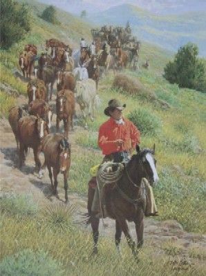 In the early seventies, Baize began making trips out to the Davis Mountains near Fort Davis, Texas where he gathered material for his drawings by taking photographs on the 06 Ranch and other ranches throughout the area. He decided to buy some property from Mr. Largent and in the process met his future wife, Mr. Largent's daughter, Ellen. The Largent family raised registered Hereford cattle and Wayne decided to start his own herd. He prefers to paint Hereford cattle because more expression is visible on their white faces. He often includes his own cattle in his paintings.
