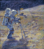 From the Artist: I have painted astronaut John Young at work collecting valuable samples of the moon. To do this he had to have tools to dig, to drive, to hammer, to rake, to drill, and bags to collect and identify each sample. When John and his fellow worker Charlie Duke bring these samples back to their lunar module they must have containers to preserve the rocks and dirt until they are delivered to the Lunar Receiving Lab back in Houston.