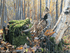 Medium / Edition: Limited edition of 450 signed and numbered art prints made from the original acrylic painting depicting a ruffed grouse sitting on a mossy log in a birch forest.