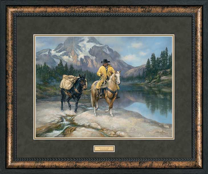 Medium: Open edition from the Great Northern Art? Premium Collection. Image size, 17" x 23". Framed size, 29" x 35" with 2-3/4" antique brown moulding. Double matting with faux textured earthen/loden outer mat and brass nameplate.
