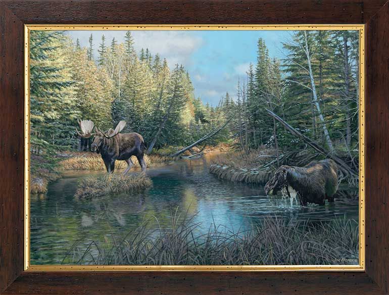 About the Art: ?As I trek through backcountry areas while grouse hunting, I am also scouting for exciting painting settings. This painting is several locations merged into one composition with moose added.?